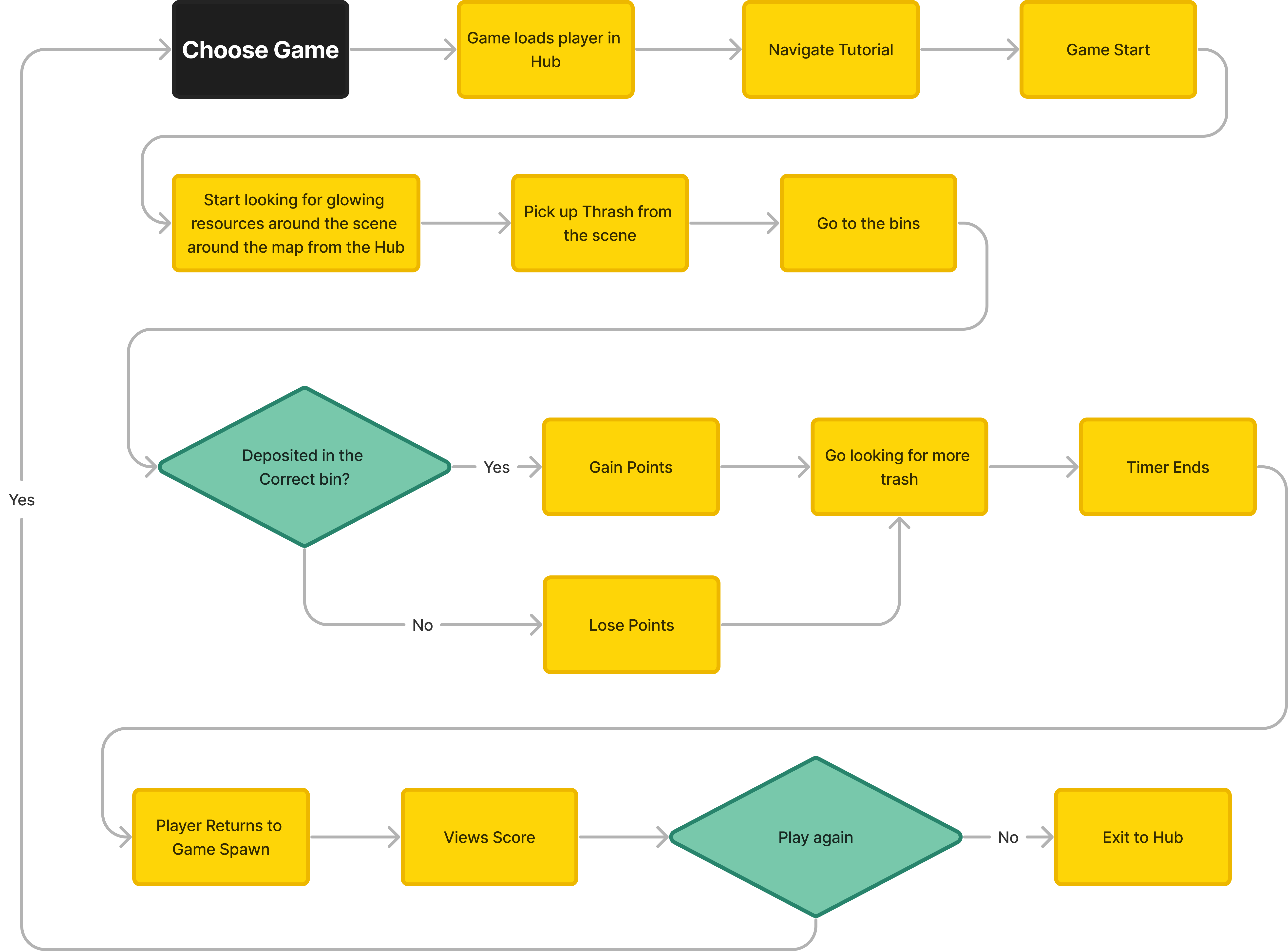They are rewarded for positively impactful actions and deterred when an improper action is carried out. These games and ideas are built to promote proper waste management and segregation as well as promoting repair cultures and preservation of sentimental electronic devices, these games are still conceptual as the current build for presentation will focus on building the open world exploration.
