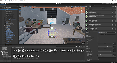 A look into the unity editor where the scene and basic menu is assembled using the XR interaction tool kit to build this open world map