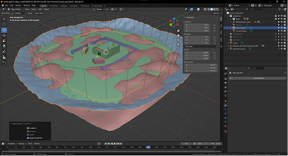 Blender is used to assemble the terrain and correctly optimize the assets with the proper shaders before importing to unity